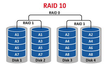 RAID 1: এটাকে ডিস্ক মিররও (Disk mirroring) বলা হয়। এখানে একাধিক ডিস্ক থাকে এবং ডেটা রিডানডেন্সি (redundancy) আছে। ফলে একটা ডিস্ক ক্রাশ করলেও অন্যটির ডেটা নিয়ে রিস্টোর করা যায়। বেশির ভাগ ডেডিকেটেড হোস্টিং প্যাকেজে RAID 1 ডেটা protection সার্ভিস থাকে। এখানেও দুটি ডিস্ক থাকে।